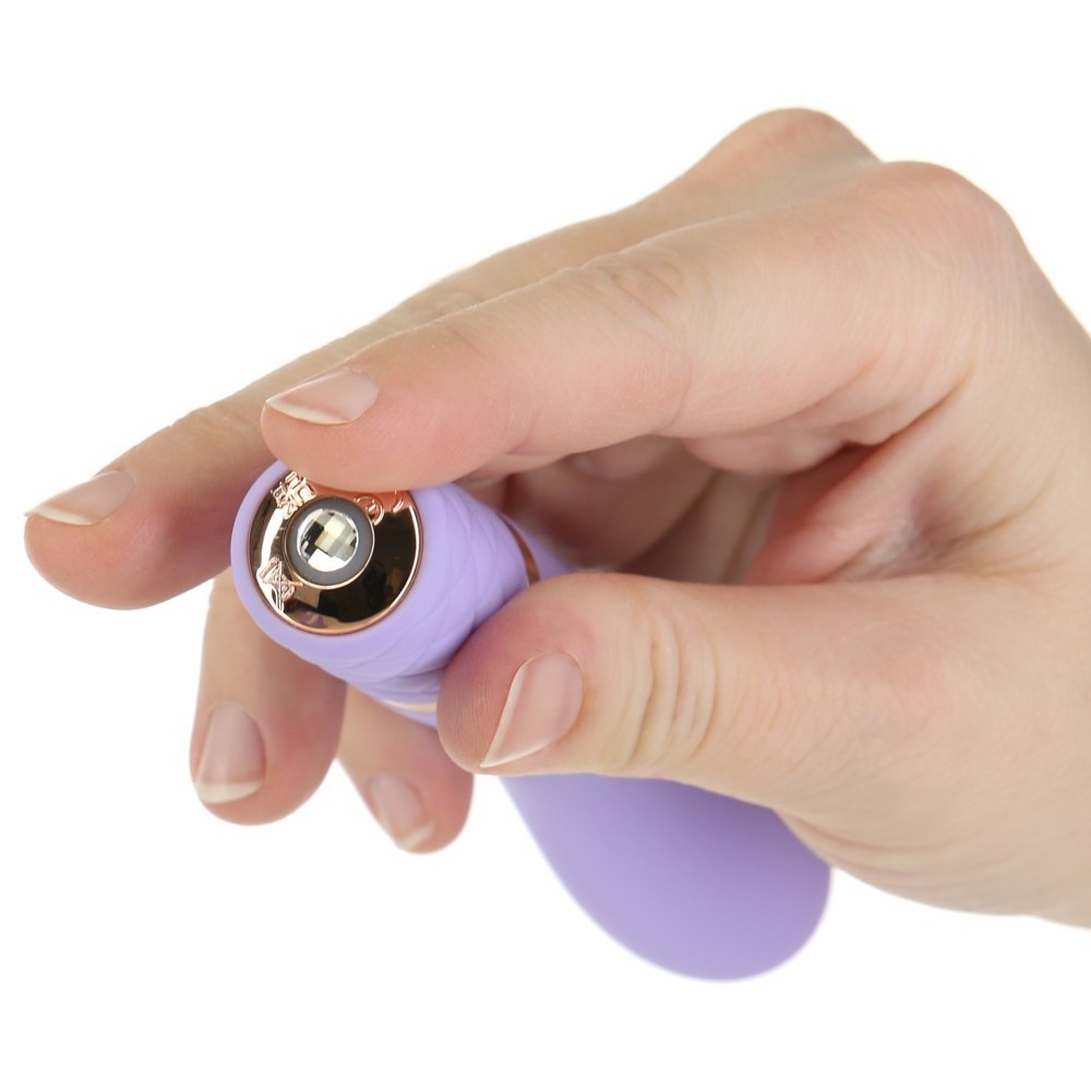 Le vibrazioni possono essere regolate in modo graduale e preciso tramite un pulsante decorato con una pietra Swarovski®. Dispone inoltre delle funzioni Press & Hold (per una potenza extra), Quick-Off (per spegnere immediatamente) e chiusura da viaggio. Ricaricabile tramite cavo USB (incluso).