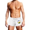 Pantaloncini da bagno per uomo Prowler Pride bianchi con dettagli LGBTQ e tessuto leggero ad asciugatura rapida.