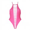 Questo body vivace presenta una scollatura all'americana regolabile e un taglio alto che esalta la silhouette, creando l'illusione di una vita più sottile e di fianchi più sinuosi. Il dettaglio aperto aggiunge un tocco di giovialità e seduzione, rendendolo perfetto per momenti audaci o look di grande impatto.