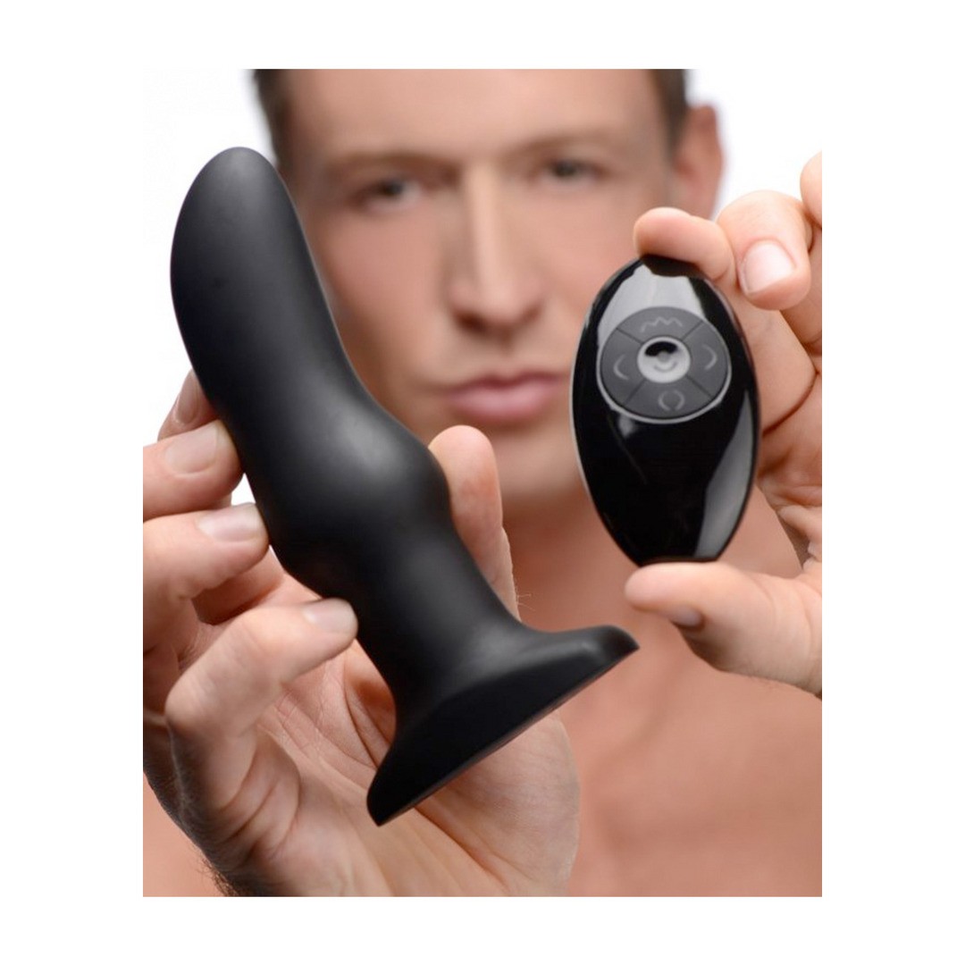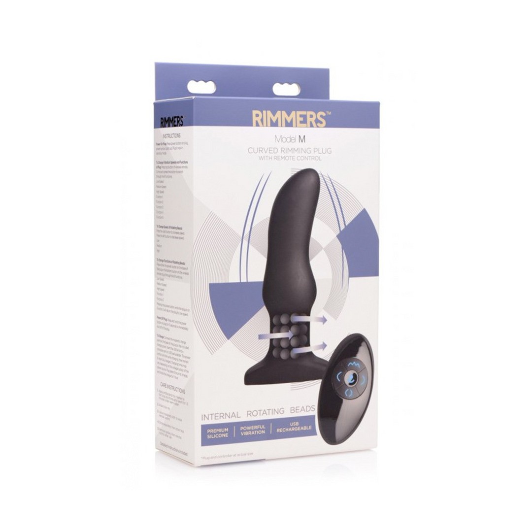 Plug anale con vibrazione, comando e perle rotanti, curvo per il punto P o G, con telecomando e silicone premium.