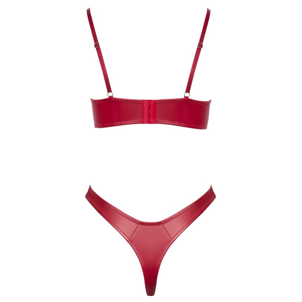 Reggiseno con ferretto e perizoma in un set di Cottelli LINGERIE. Entrambi in un sofisticato wet look rosso, morbido ed elastico per il massimo comfort.