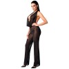 La bellissima tuta nera di Noir è realizzata in un bellissimo powernet scintillante. È straordinariamente trasparente. La tuta ha gambe lunghe. Ha un collo molto basso. Con uno scollo a farfalla, le spalle e la schiena sono scoperte. Morbida ed elastica per una vestibilità molto confortevole.
