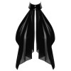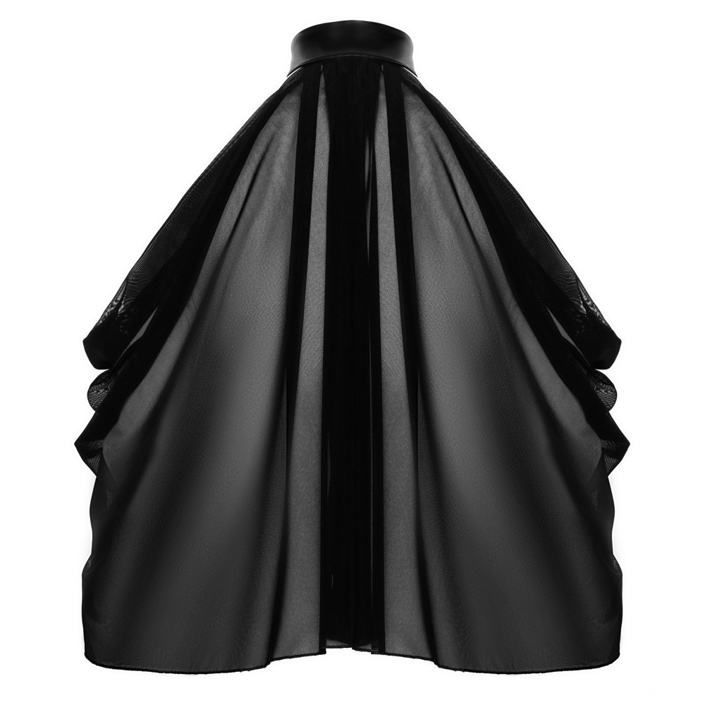 Top ampio e morbido di Noir, interamente realizzato in delicato tulle nero e trasparente. In stile coprispalle con scollo a collo alto che crea un effetto bagnato. Presenta bottoni a pressione sulla parte anteriore dello scollo. Taglio asimmetrico: corto sul davanti e aperto, le braccia e la schiena sono coperte.