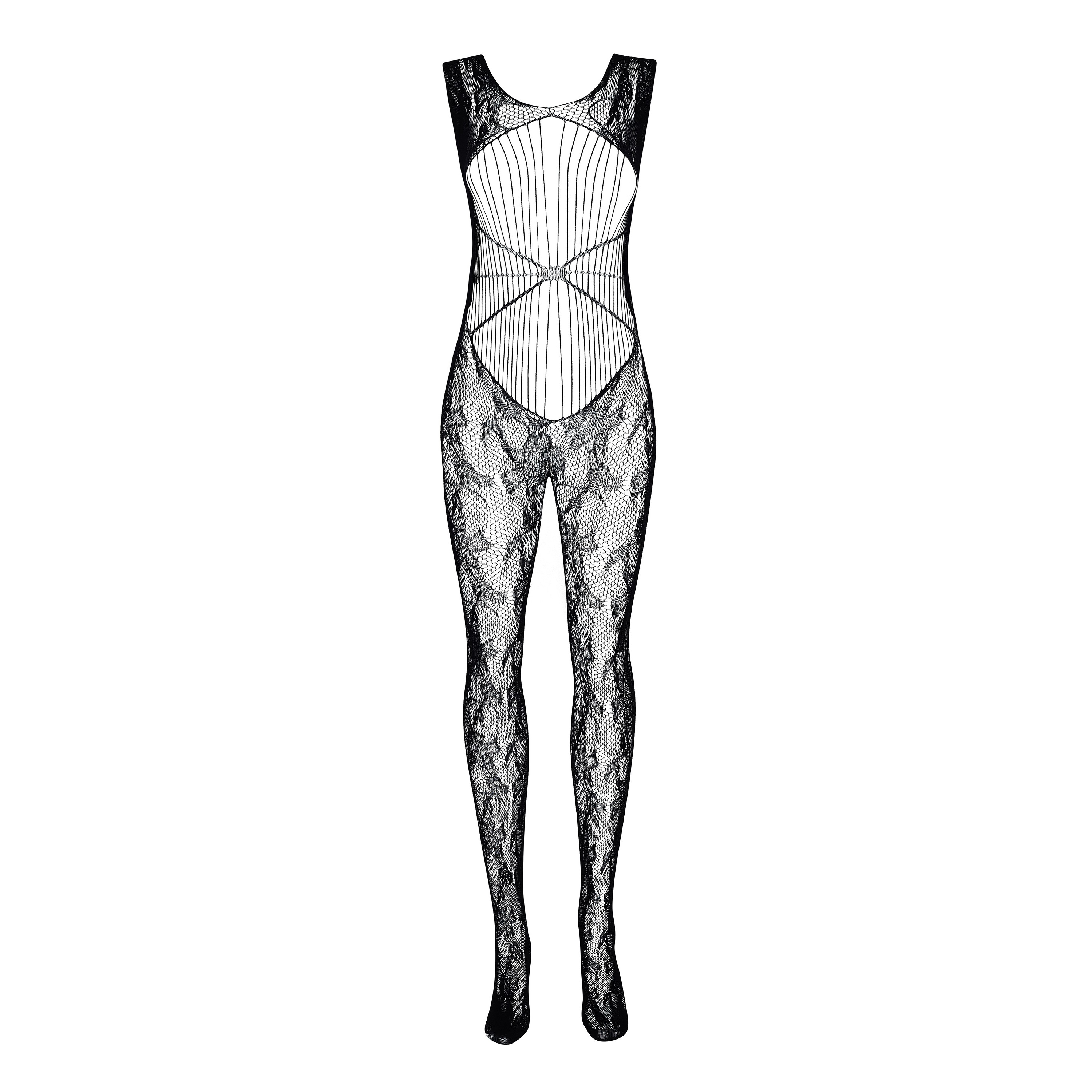Sexy catsuit molto femminile realizzato in rete di pizzo con un romantico motivo floreale. La parte anteriore e posteriore è realizzata con una delicata ragnatela di sottili fasce elastiche.