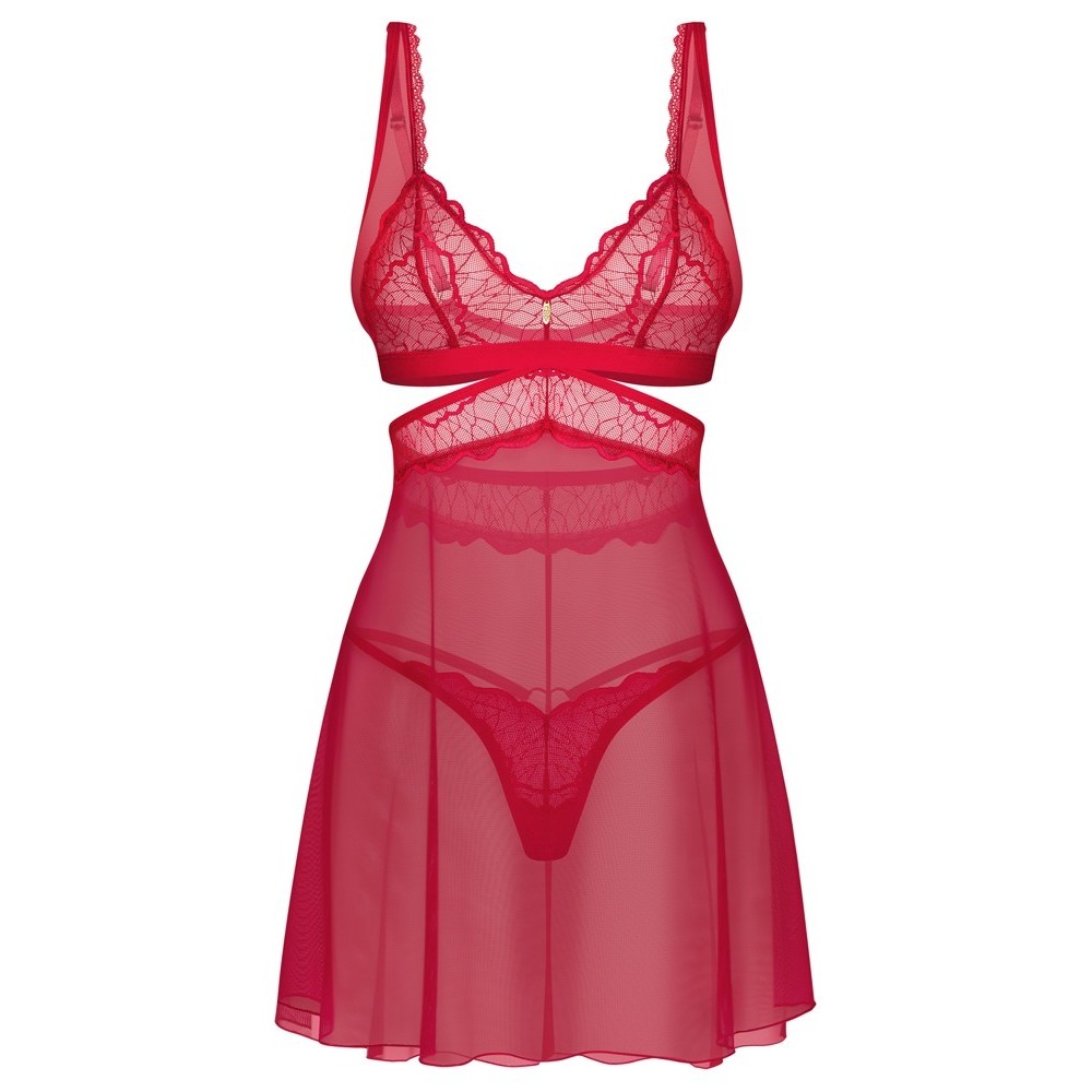 Il set Cupide Desir di Obsessive contiene un babydoll svasato e una stringa in sensuale materiale rosso con dettagli color oro. Il set è in un seducente pizzo trasparente e delicato. Il set è morbido ed elastico per una vestibilità molto confortevole. Con un discreto dettaglio decorativo tra le coppe senza fili. Le spalline possono essere regolate per adattarsi. Sul retro è presente una chiusura a gancio per regolare il babydoll. La bellissima stringa di pizzo ha un cuore decorativo sui glutei.