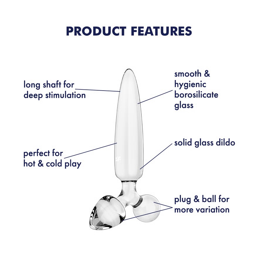 Questo dildo in vetro Satisfyer è qui per offrirti un triplo piacere! Con un dildo affusolato lungo 21 cm e due plug più piccoli di forma diversa, puoi scegliere: usalo per la stimolazione anale o vaginale, stimola solo le parti esterne dei tuoi punti caldi o vai più in profondità, proprio come desideri - grazie alla sua forma speciale, è sicuro da usare per tutti i tipi di piacere.
