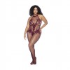 HALTER AND CROTCHLESS FLORAL BODYSTOCKING - QUEEN SIZE - CHERRY