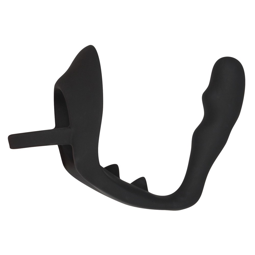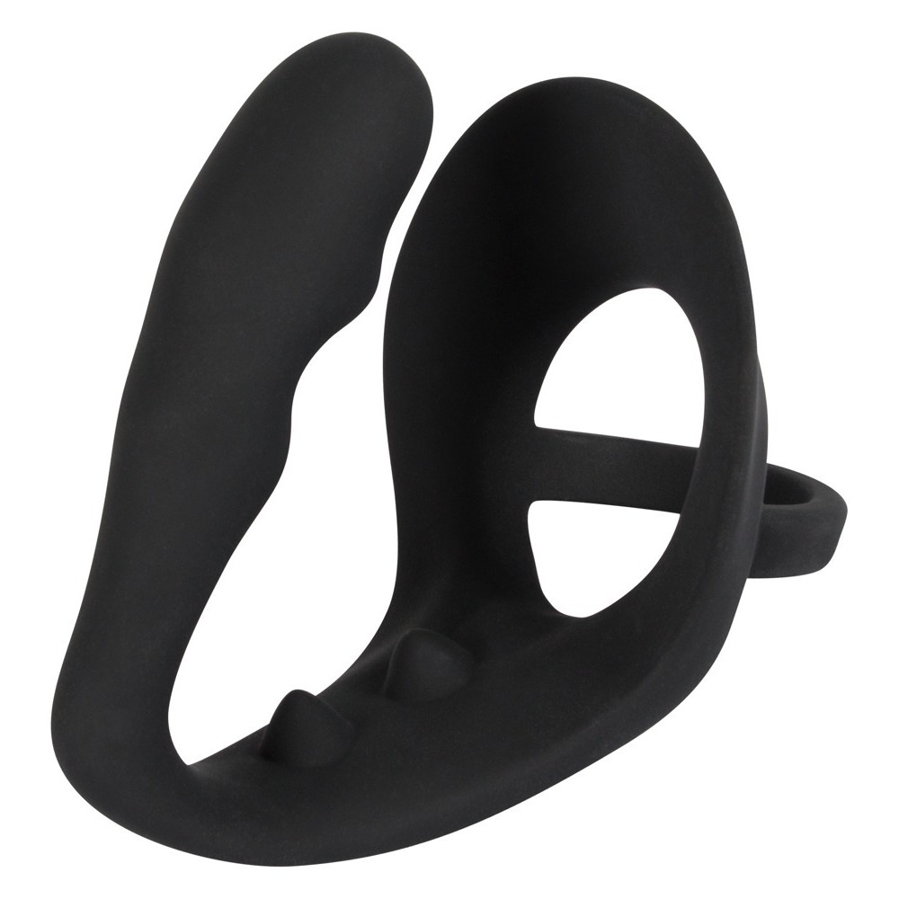 Este anel para o pénis preto combina um plug anal adicional com uma ponte perineal estimulante, oferecendo prazer em múltiplos pontos. Puro êxtase garantido!