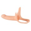 Dildo realista oco com tiras elásticas e glande sólida que aumenta o comprimento do pénis em 5 centímetros. Este dildo com correia é ideal para homens que desejam aumentar comprimento e espessura do pénis, melhorando ao mesmo tempo a rigidez e potência. A parceira também pode desfrutar de sensações intensas.