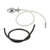 O plug anal oco e pesado liga-se ao plug peniano aberto através de um tubo, oferecendo uma estimulação combinada única. Inclui um tubo de substituição preto.