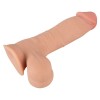 Dildo flexível com pele móvel S da Nature Skin, em formato de pénis extremamente realista, com superfície móvel, veias marcadas e glande saliente. A ventosa sob os grandes testículos fixa-se firmemente a qualquer superfície lisa, permitindo prazer totalmente sem mãos. É também compatível com strap-ons e arneses.