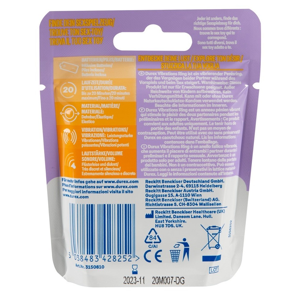 Anel para o pénis com vibrações estimulantes durante cerca de 20 minutos, destinado a utilização única.