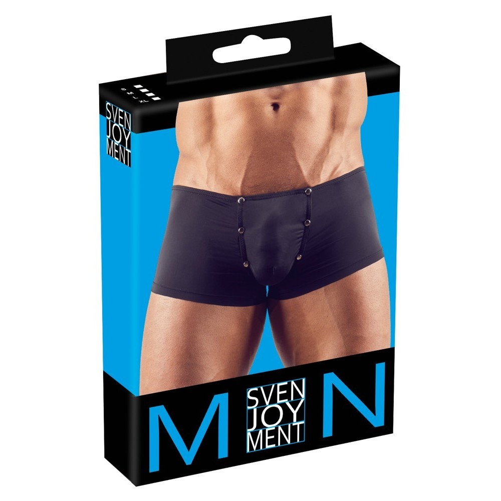 Boxers extremamente elásticos e ligeiramente transparentes, com abertura frontal e efeito de volume. A bolsa elegante com botões de pressão confere o toque final a este look sensual e ousado.