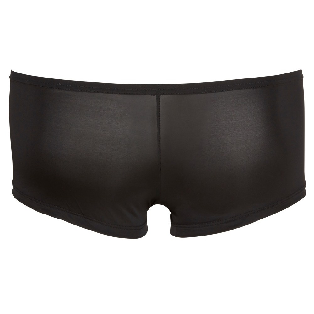 Boxers pretos ligeiramente transparentes, com botões de pressão prateados e costura na cintura que realça a silhueta. Suaves e elásticos para um ajuste perfeito e máximo conforto.
