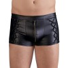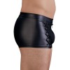 Calção preto com fecho de correr em latão acolchoado à frente e laços marcantes nas laterais. Com cós revestido a tecido, apresenta um material justo e elástico que garante um ajuste perfeito e elevado conforto.