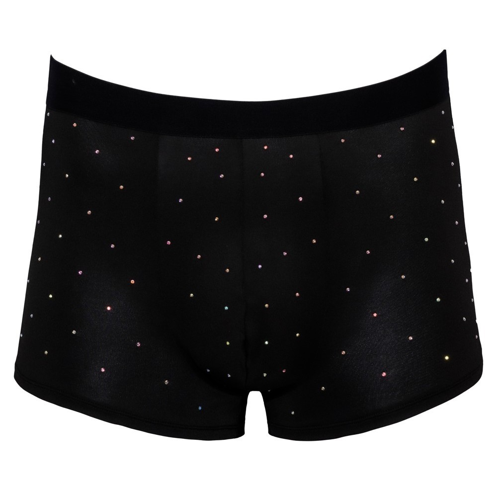 Boxers justos e acinturados da Svenjoyment, confeccionados em microfibra preta e decorados com brilhantes na parte frontal. Maravilhosamente macios e elásticos, com cintura larga e tecida para máximo conforto.