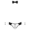 Conjunto Svenjoyment composto por jockstrap, 2 punhos para os pulsos e um laço. O jockstrap apresenta uma elegante inserção com padrão risca de giz e botões decorativos, com design aberto atrás para um toque mais ousado. Confeccionado em material elástico e confortável, ideal para momentos mais atrevidos.