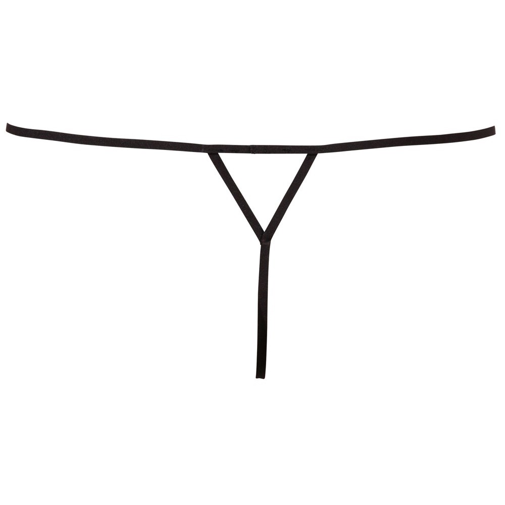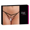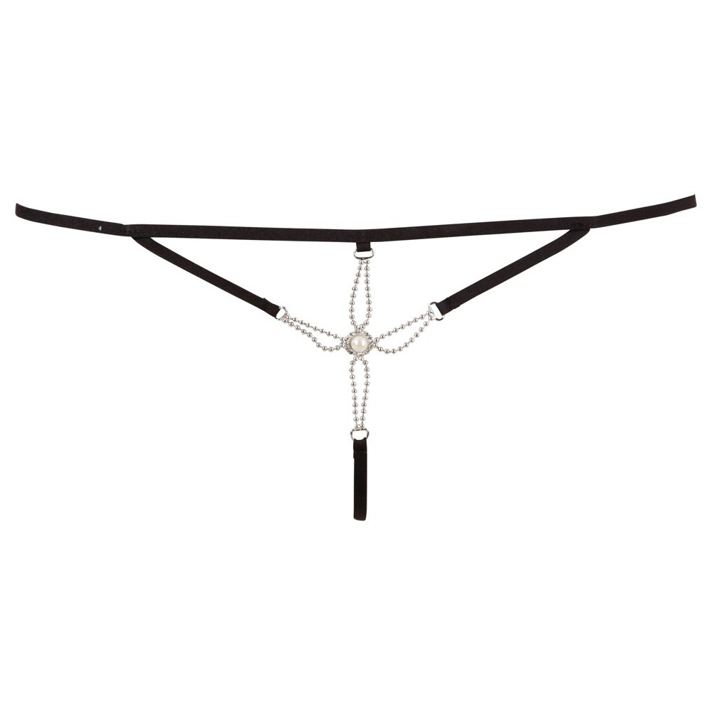 Excitante string em design de alça com decoração elaborada de pérolas sobre a virilha aberta.