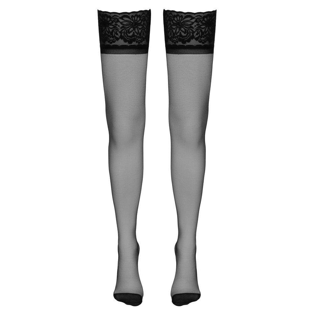 Meias de liga com costura decorativa ao longo da parte traseira e elegante salto cubano, que alongam visualmente a silhueta. A delicada renda na parte superior confere o toque final perfeito a este look sofisticado e sensual. Incluem forro em silicone para um ajuste seguro e antiderrapante.