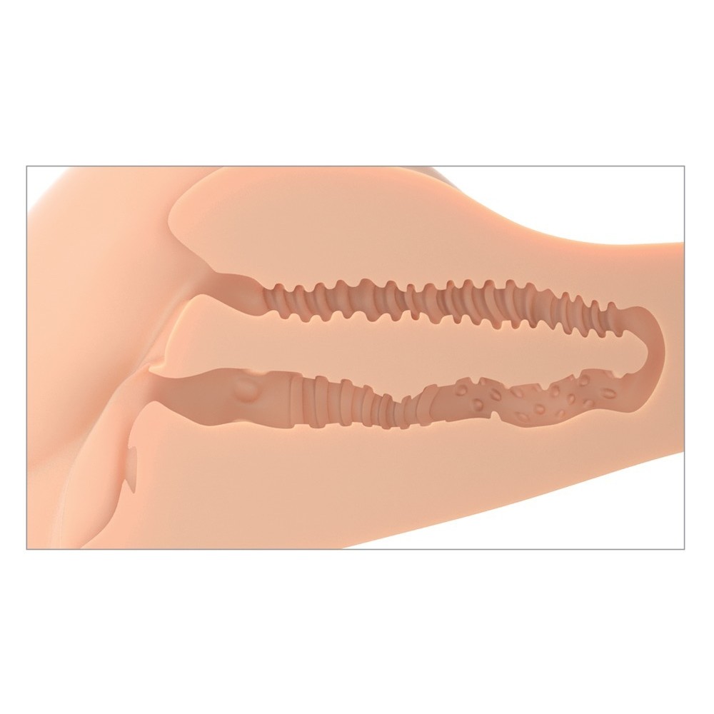 Pode ser utilizado em várias posições — como missionário, estilo cachorrinho, cowgirl, entre outras — e permite penetração por ambas as extremidades. Os dois canais de prazer, apertados mas flexíveis, apresentam no interior texturas elaboradas e variadas, concebidas para proporcionar massagens intensas e profundamente estimulantes.
