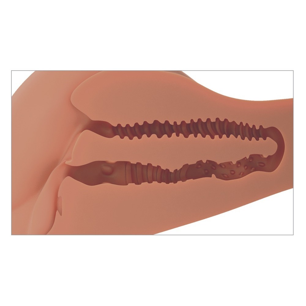 Pode ser utilizado em várias posições — como missionário, estilo cachorrinho, cowgirl, entre outras — e permite penetração por ambas as extremidades. Os dois canais de prazer, apertados mas flexíveis, apresentam no interior texturas elaboradas e variadas, concebidas para proporcionar massagens intensas e profundamente estimulantes.