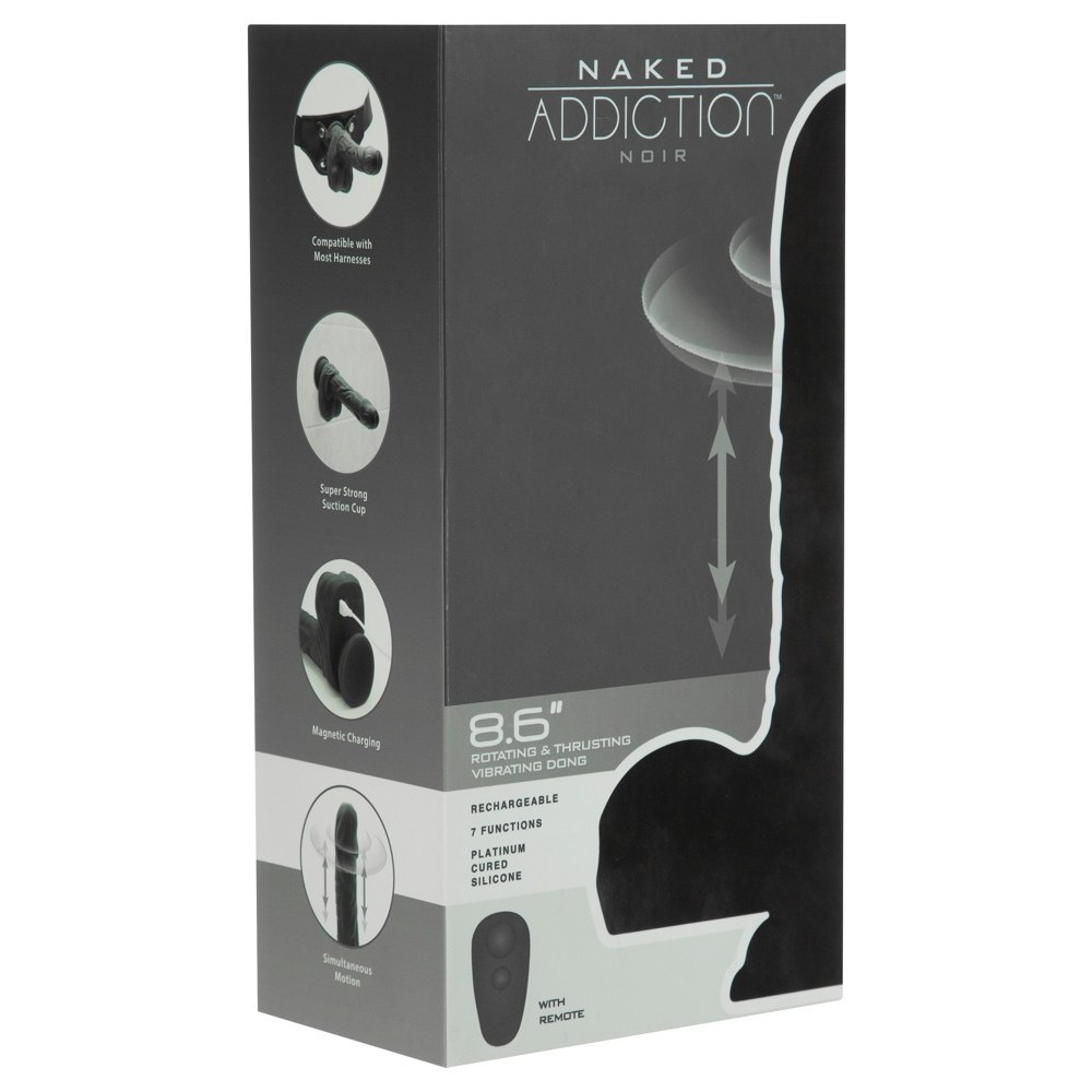 O vibrador de impulso flexível 8,6" Rotating & Thrusting Vibrating Dong da Naked Addiction apresenta um aspeto hiper-realista, com veias finas e glande saliente. Possui base de sucção sob os testículos que adere firmemente a qualquer superfície lisa, permitindo prazer mãos-livres. Compatível com strap-ons.