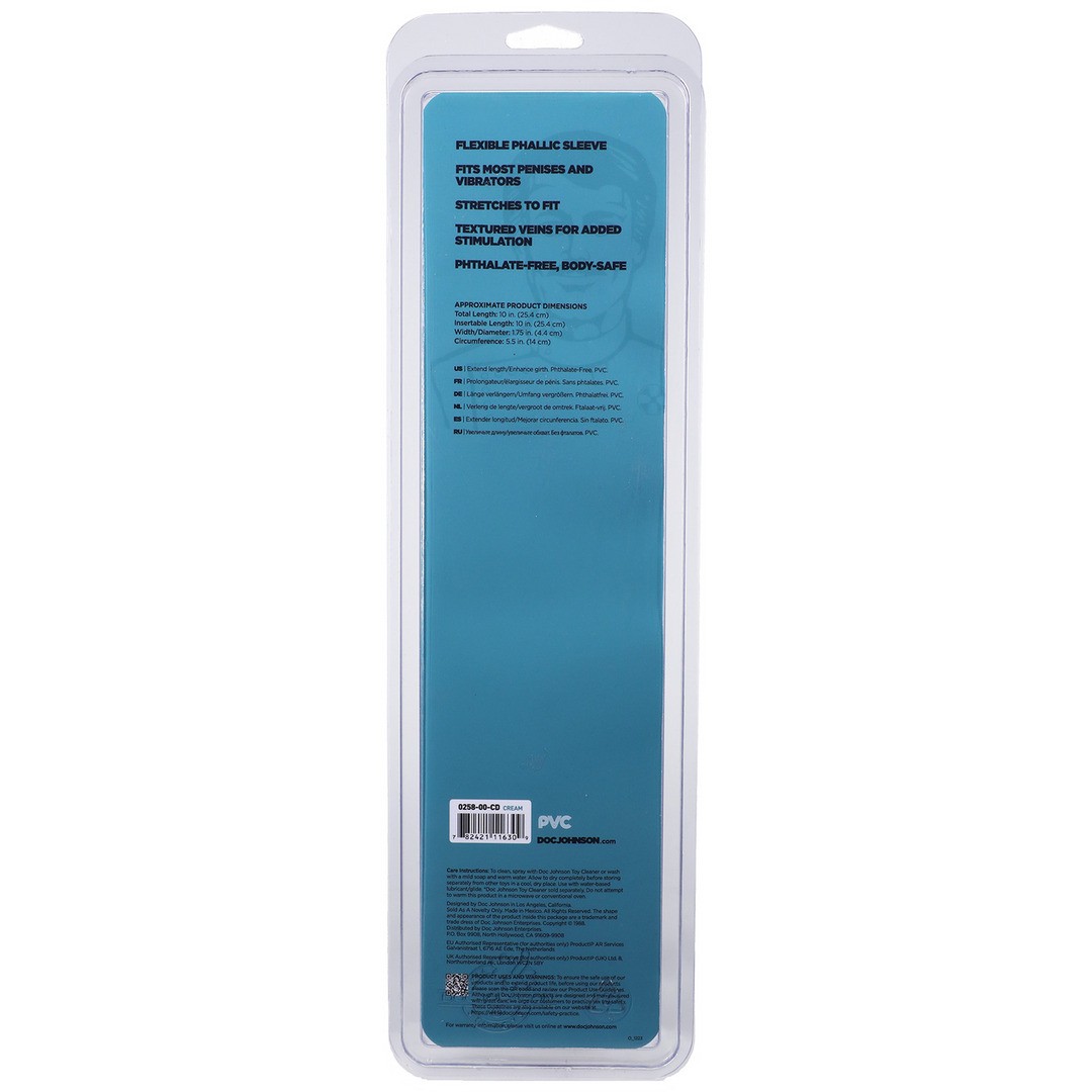 Trata-se de uma manga extensora para o pénis. O Cock Master de 26,7cm da Doc Johnson é uma extensão peniana robusta e realista, concebida para acrescentar comprimento e grossura ao pénis.
