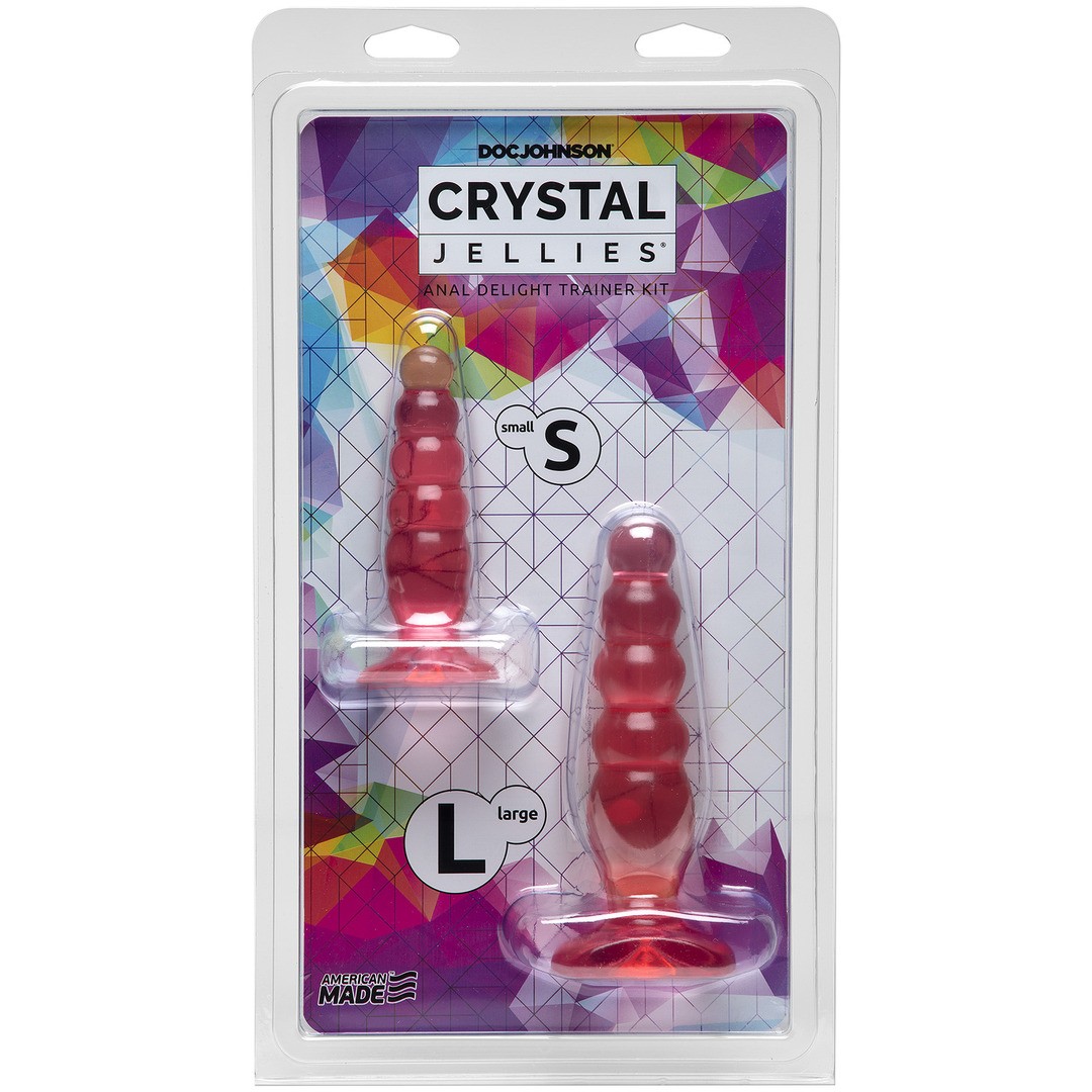 Explore a sua zona traseira com confiança! O Crystal Jellies Anal Trainer Kit é ideal para principiantes no jogo anal, incluindo um plug pequeno com 4 cm de comprimento inserível e um plug médio com 6 cm de comprimento inserível.