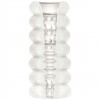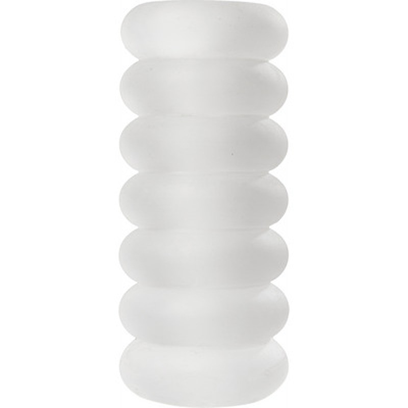 O exclusivo túnel de prazer de textura tripla apresenta grandes pérolas de massagem na entrada, nervuras marcadas na zona central e pequenas pérolas estimulantes que afunilam até uma extremidade aberta e apertada.