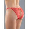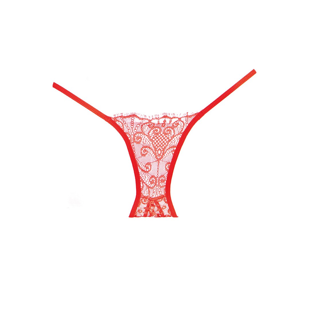 Esta cueca de renda delicadamente fina tem um recorte celestial nas costas.