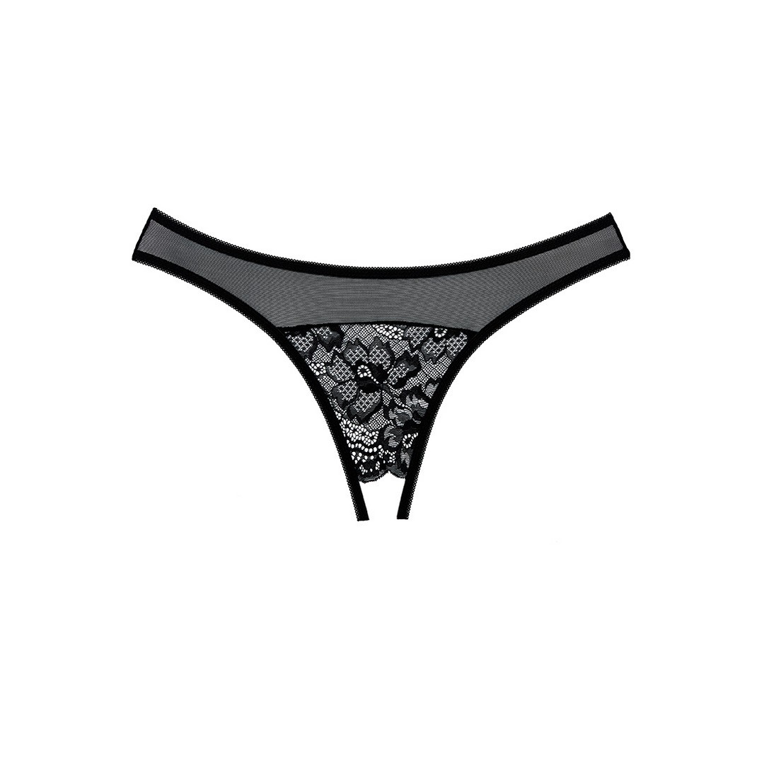 CUECA DE RENDA COM ABERTURA JUST A RUMOR PRETA ALLURE