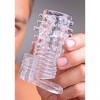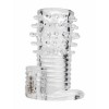 Manga para o pénis texturizada com bala vibratória para estímulo clitoriano e aumento da ereção.