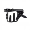 Este arnês versátil inclui três dildos destacáveis, concebidos para penetração anal e/ou vaginal do utilizador e um dildo frontal para penetrar o parceiro. Como característica adicional, é possível trocar os tamanhos e reorganizar as posições dos dildos para personalizar a experiência e adaptá-la às preferências do casal.