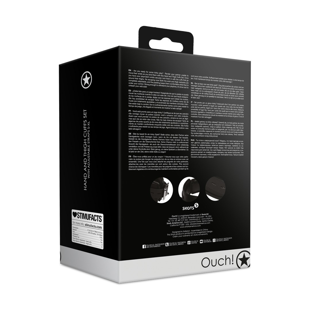 Leve a submissão a um novo patamar com este conjunto de algemas para as mãos e as coxas, projetado para impedir qualquer movimento e garantir uma imobilização total.