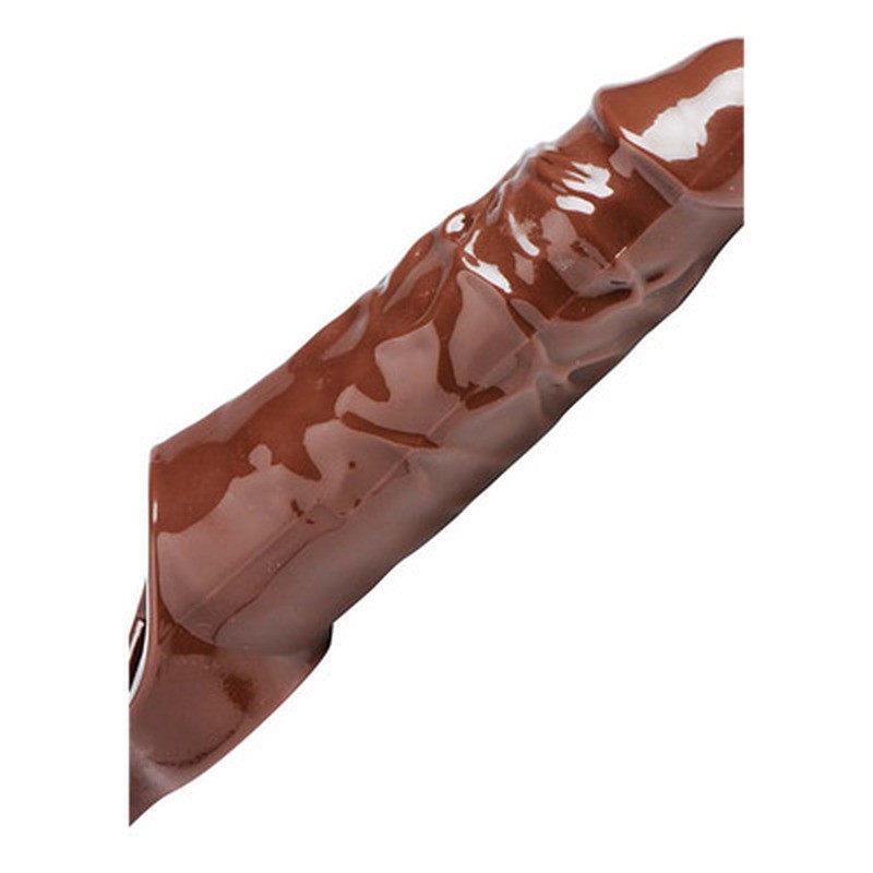 Manga extensora do pénis em TPR flexível que aumenta o comprimento, a circunferência e o prazer de ambos os parceiros.