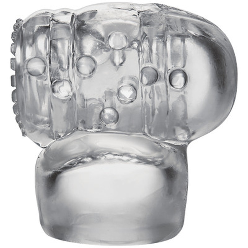 Acessório texturizado e transparente para varinha massajadora, com nódulos extragrandes e efeito de sucção.