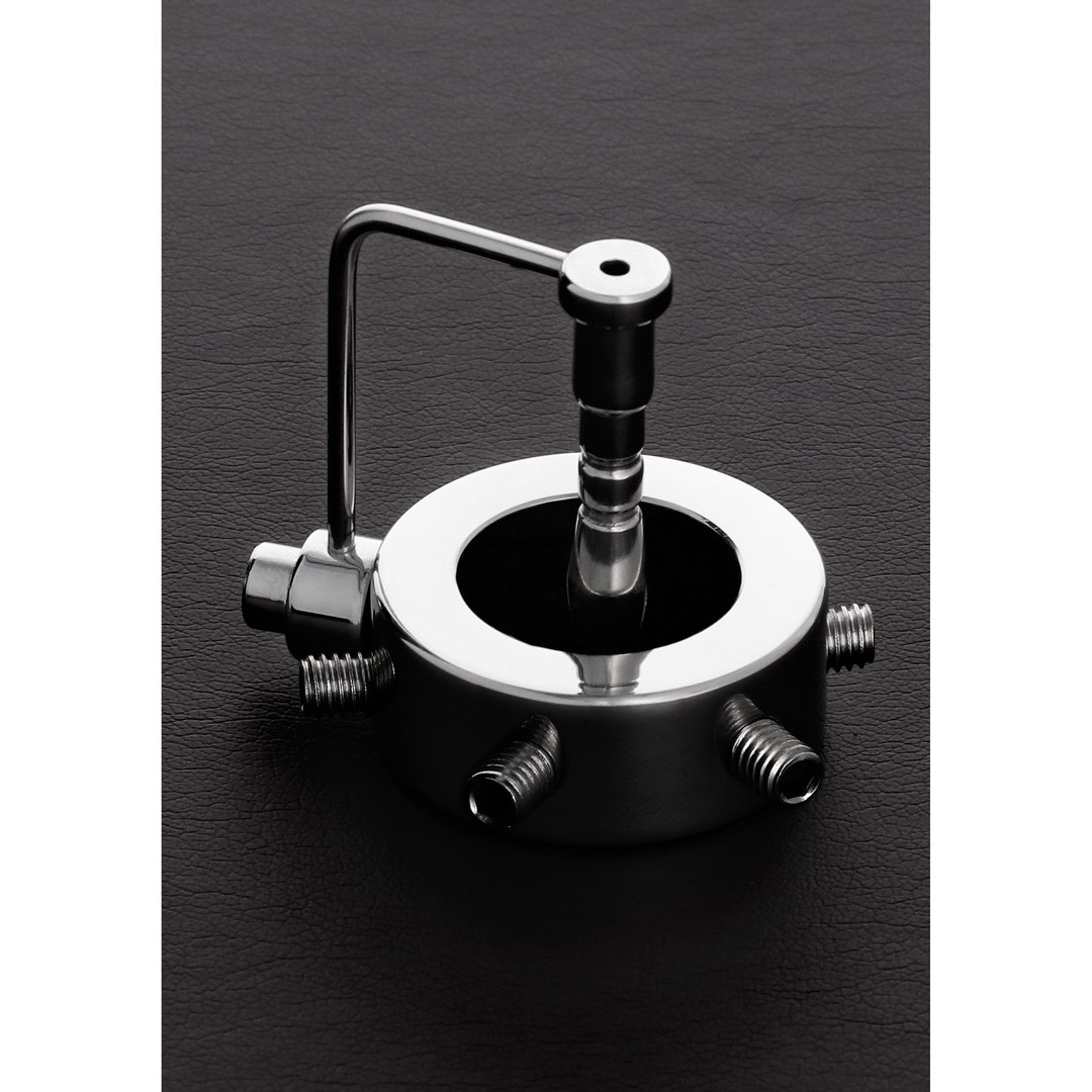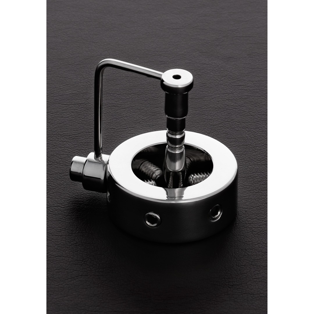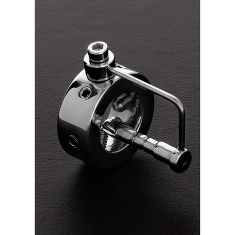 Anel para o pénis com sonda de uretra e 6 espigões em aço inoxidável para uma provocante tortura erótica.