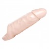 Manga jumbo para pénis com textura interna, ponta sólida e correia de segurança para um aumento imediato no tamanho e prazer.