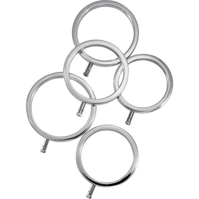 Conjunto de 5 anéis para o pénis ElectraRings em alumínio, compatíveis com estimulação electrosexual.