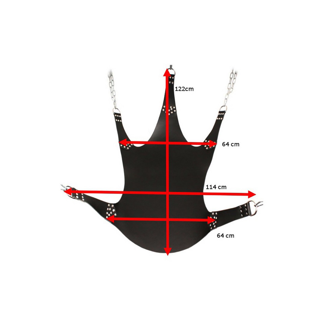 Este baloiço é um modelo que se integra perfeitamente na sua sala de jogos ou numa masmorra BDSM. É fabricado em couro com cinco pontos de suspensão em aço.