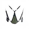 Este baloiço de tecido verde foi concebida com uma forma triangular e tecido de camuflagem. Ajusta-se com 3 ou 4 pontos de fixação. Inclui os seguintes acessórios: 4 ganchos com mosquetões metálicos, apoios almofadados para os pés (11 cm de largura) e uma almofada triangular preta (24 x 20 cm).