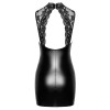 O minivestido justo e sem mangas da Noir é confeccionado em bonito powerwetlook preto. As copas e as alças largas são feitas de renda delicada. É macio e elástico para um ajuste justo à pele mas confortável. Há um grande recorte na zona do decote, que é emoldurado por renda. Há também um grande recorte nas costas. O decote haltere em renda tem botões para o apertar.