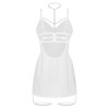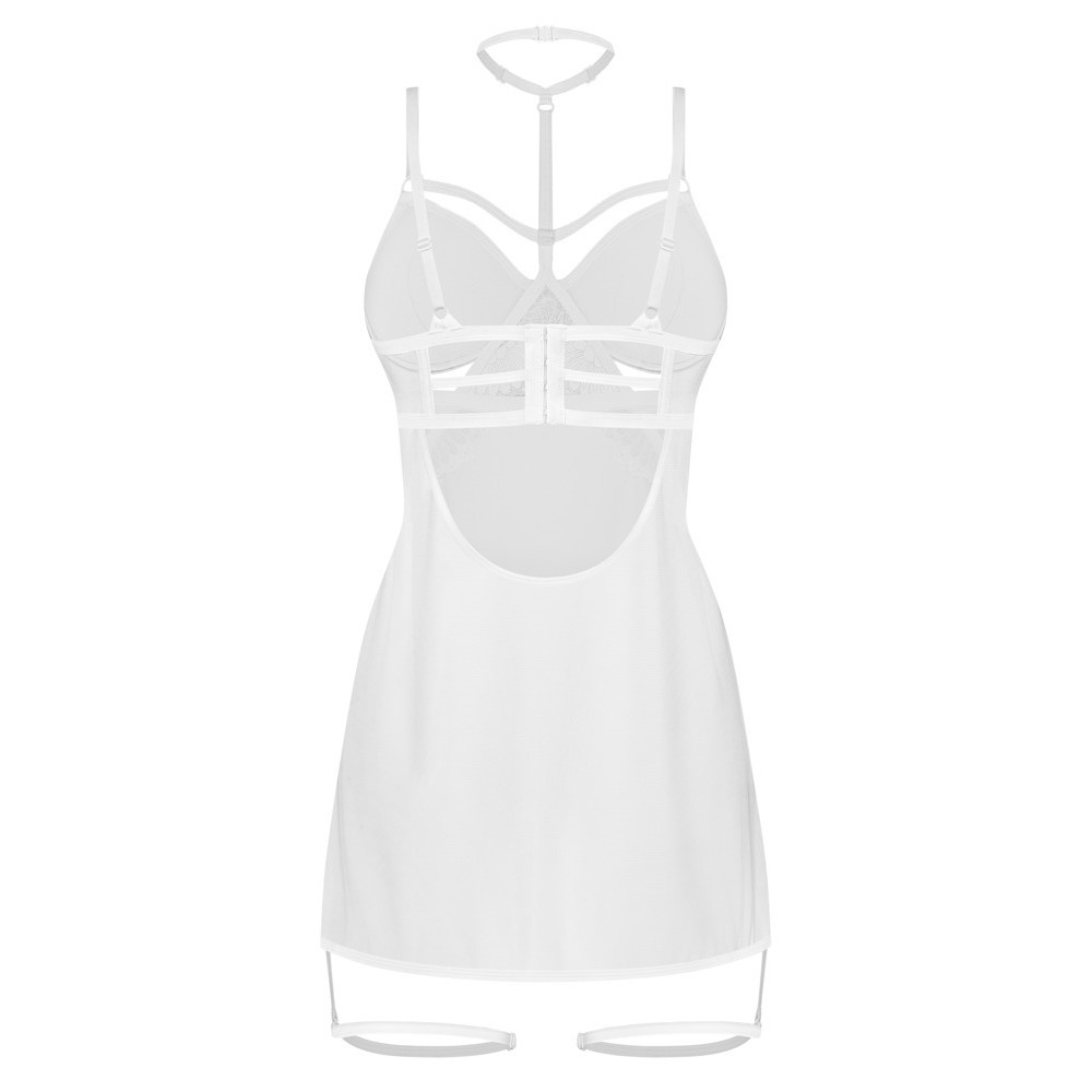 A camisa de noite justa Arrowel da Obsessive é feita de tecido branco transparente com uma delicada renda na frente. É macia e elástica. Também tem tiras elásticas elegantes nas copas macias com aros. Uma alça ajustável conduz à gargantilha ajustável.