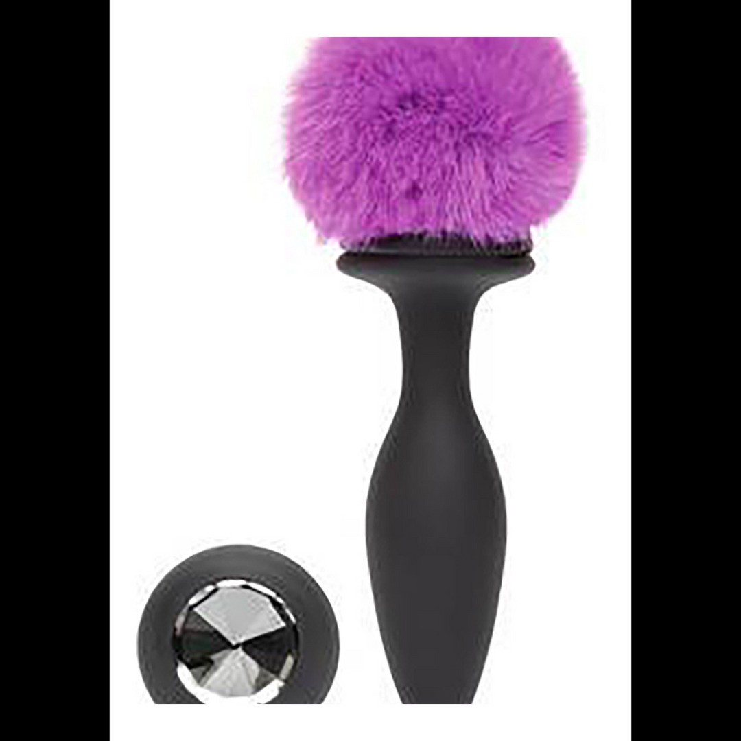 Plug anal vibratório em silicone com cauda de coelho felpuda e brilhante intercambiáveis, feito para quem adora diversão saltitante e prazer intenso.