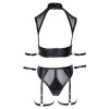Комплект Cottelli BONDAGE, состоящий из топа и стрингов, выполнен из элегантного материала с матовым эффектом и прозрачными вставками из powernet. Топ имеет глубокий вырез и высокий воротник с декоративным кольцом спереди и двумя кнопками сзади для регулировки. Топ практически без спинки, с широкой лямкой, оснащенной застежкой-крючком для лучшей поддержки. С каждой стороны имеются кольца с петлями для рук.
