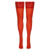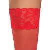 Красные чулки на подвязках от Cottelli LEGWARE с кружевной отделкой шириной 9 см. Внутренняя сторона с силиконовым укреплением для надежной фиксации и отличной посадки. Плотность нити 20 ден. Сертификат Oeko-Tex. Дизайн кружева может отличаться от изображенного.