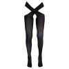 Черные колготки с перекрещивающейся лентой на талии. Без промежности.