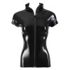 Эта латексная рубашка облегает талию и имеет короткие рукава. Она сидит как вторая кожа, делая ее неотразимо сексуальной. Застежка по всей длине спереди позволяет тому, кто ее носит, решать, какую часть тела он хочет показать.