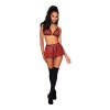 Красный клетчатый костюм для спальни в стиле школьницы с кожаной отделкой и пряжкамиБралетт с черной кружевной оборкой и кожаной отделкой, искусственной пряжкой и регулируемыми бретелями на спинеМини-юбка с плиссировкой и кожаной отделкой с пряжкойПояс с пряжкойСочетаемое ожерелье-чокер в комплектеПоказано с трусиками Style 0277 продаются отдельно/