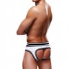 Эти стильные трусы без спины от Prowler точно заставят головы повернуться! Изготовленные из смеси полиэстера и спандекса, эти трусы имеют черно-белый двухцветный пояс, классический логотип Prowler в виде лапы, пришитый спереди на поясе, и гладкий белый материал по всей поверхности. Будучи трусами без спины, эти трусы также имеют открытую заднюю часть, что означает, что вы можете продемонстрировать свою попку, пока носите их, чтобы вызвать слюноотделение у окружающих!